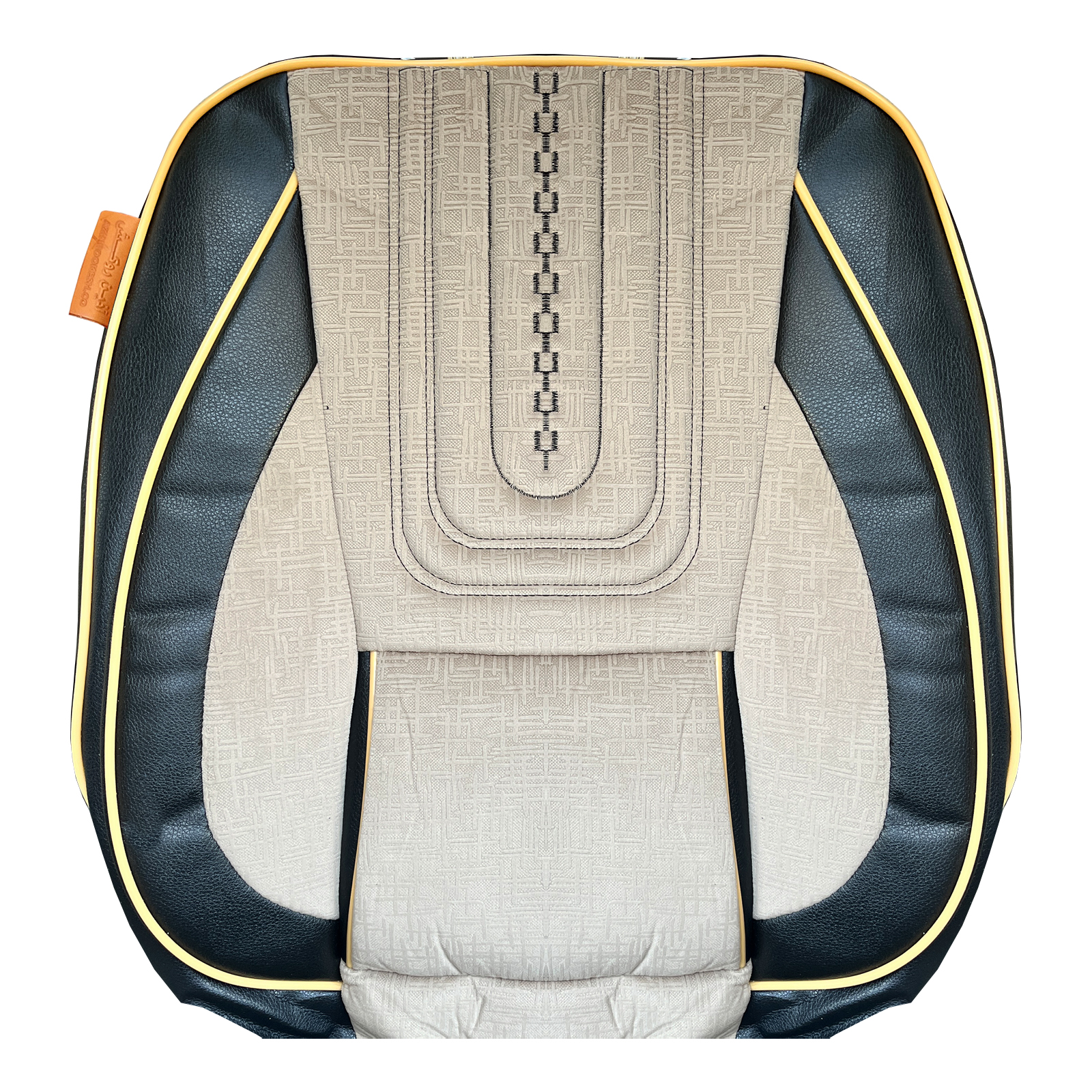 روکش صندلی پژو 405 از چرم مصنوعی PU ایرانی به همراه مخمل لیزری خارجی در قسمت نشیمن گاه و تکیه گاه که برای زیبایی دو چندان محصول استفاده شده است.