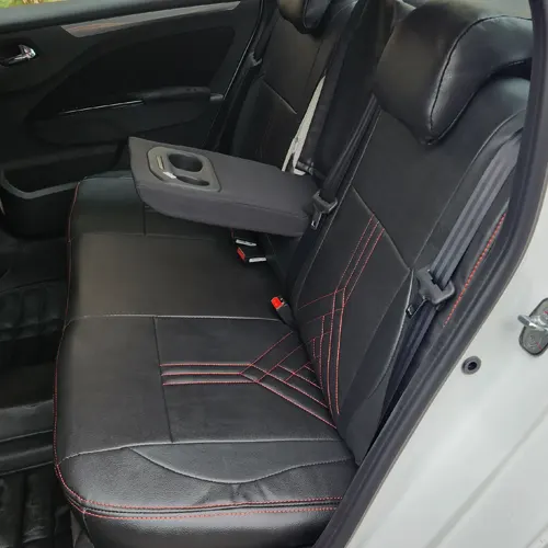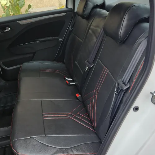 روکش صندلی پژو طرح جدید از چرم مصنوعی PU ایرانی به همراه چرم گلدوزی شده در قسمت نشیمن گاه و تکیه گاه که برای زیبایی دو چندان محصول استفاده شده است.