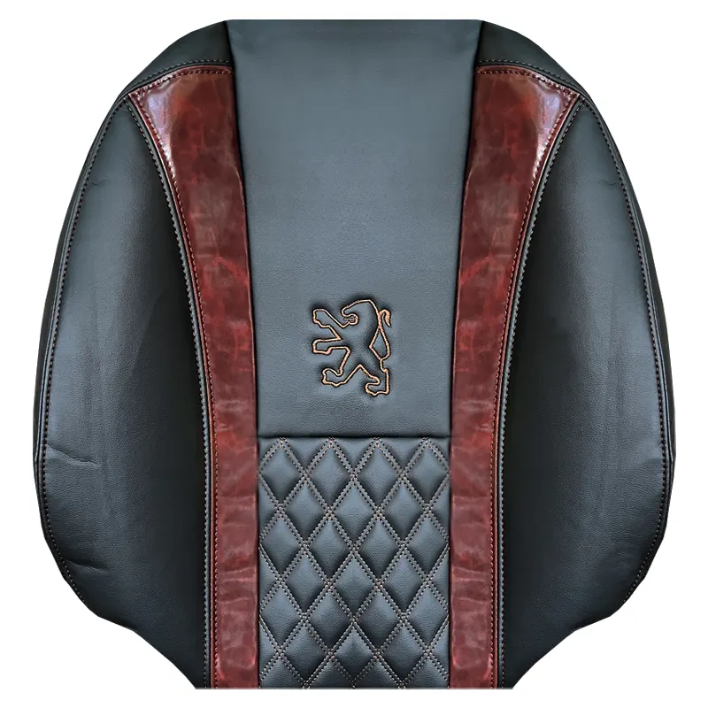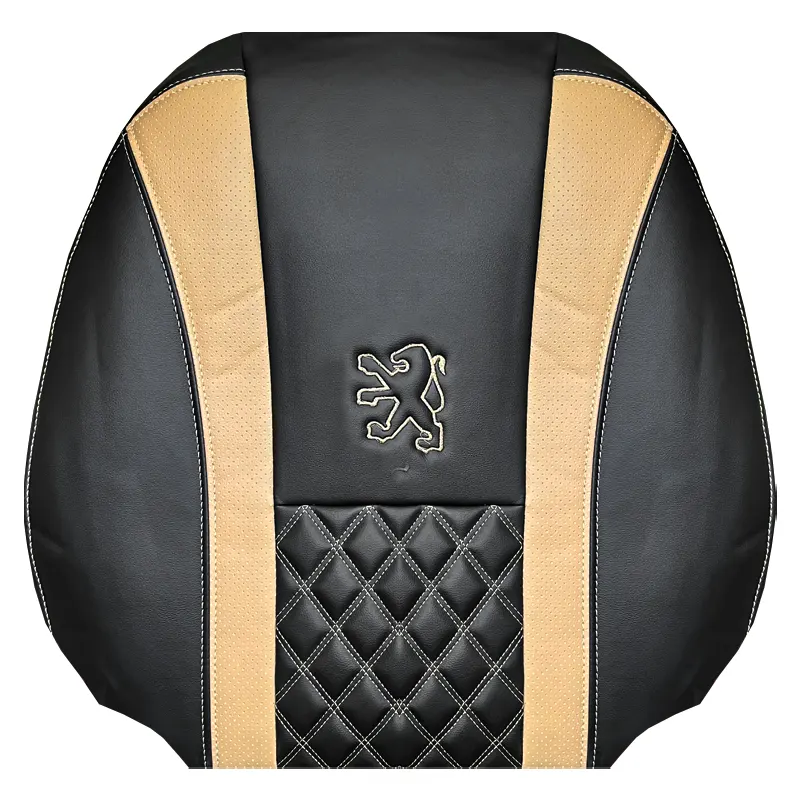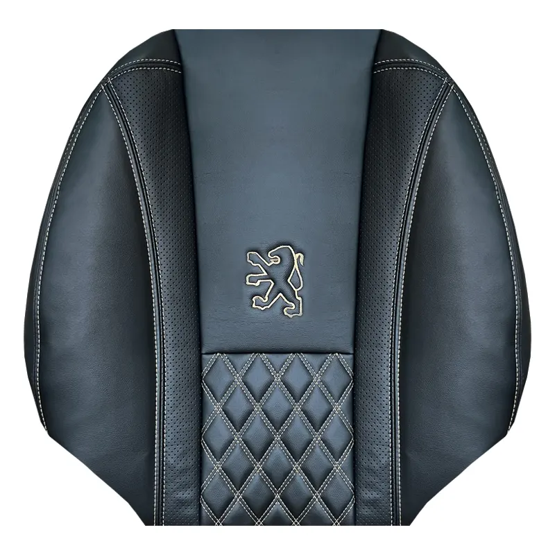 روکش صندلی پژو پارس جدید ( EF7 ) از چرم مصنوعی PU خارجی به همراه چرم گلدوزی شده در قسمت نشیمن گاه و تکیه گاه که برای زیبایی دو چندان محصول استفاده شده است.