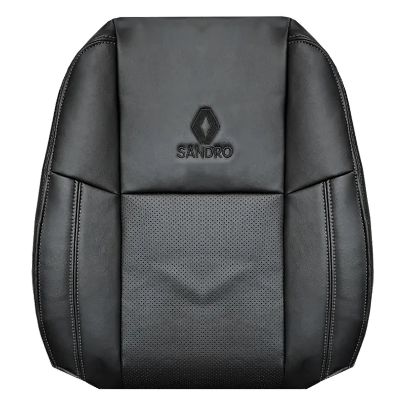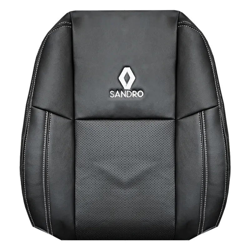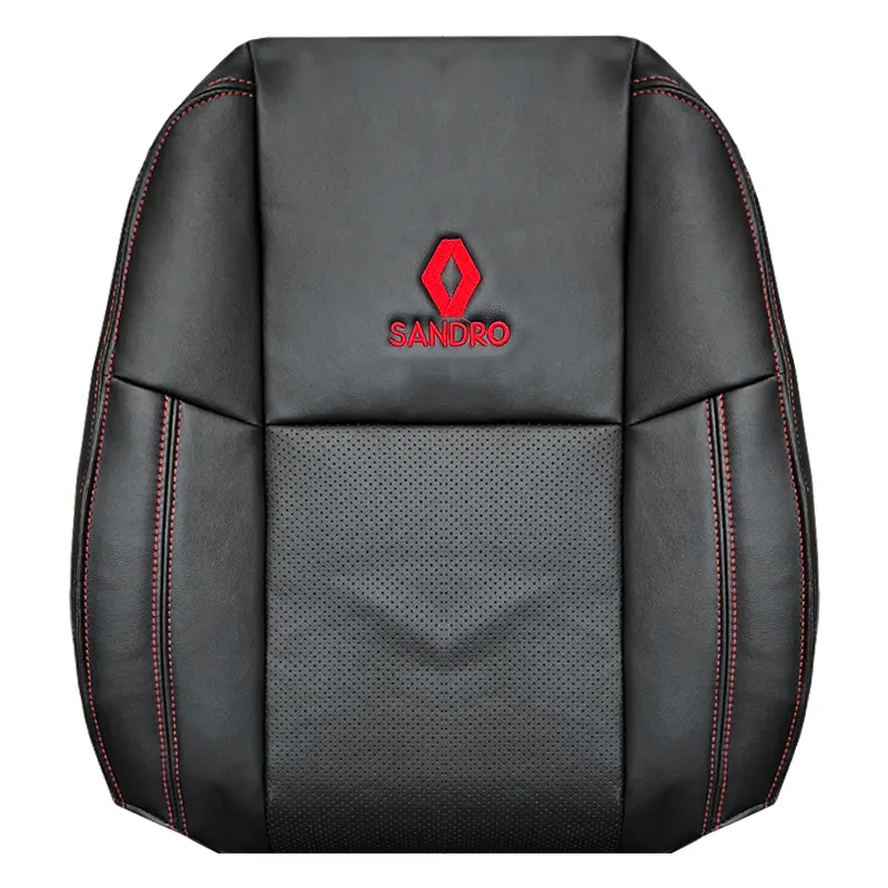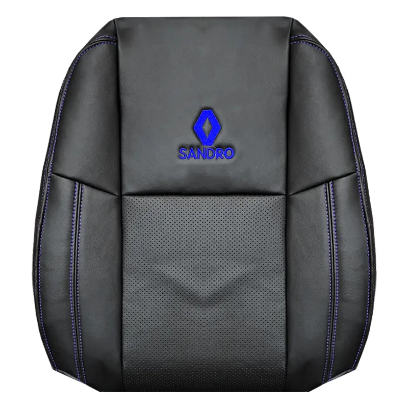 روکش صندلی رنو ساندرو از چرم مصنوعی PU خارجی به همراه چرم گلدوزی شده در قسمت نشیمن گاه و تکیه گاه که برای زیبایی دو چندان محصول استفاده شده است.